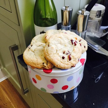 7. Initially, the cookies may look and feel slightly underdone but this is as they should be. The outside will soon firm up while the inside of the cookies will remain soft and chewy. Eat while still warm or store in a biscuit tin for later.